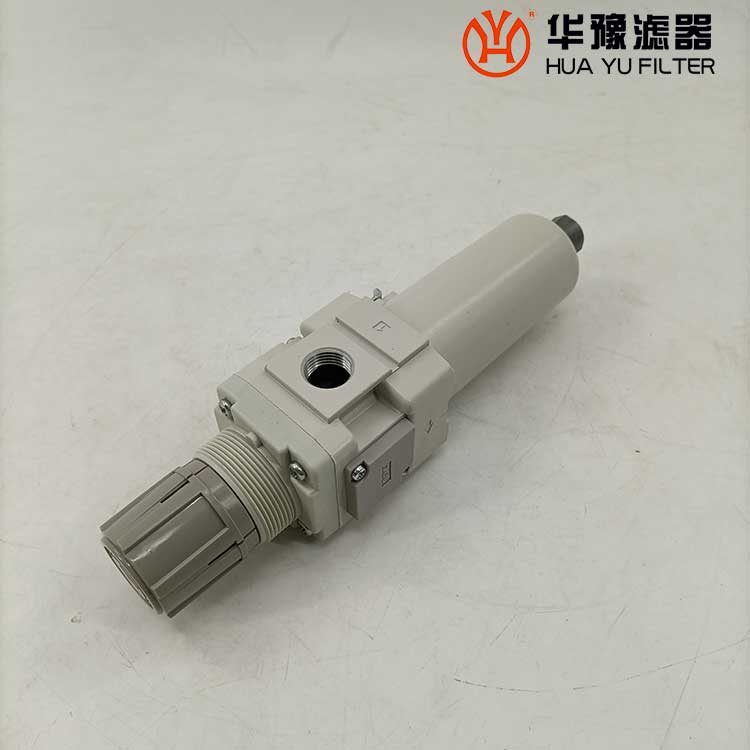 從進口流入的壓縮空氣,經導流片的切線方向的缺口強烈旋轉,液態油水及固態污染物受離心作用,被甩到水杯內壁上,再流至底部。除去了液態油水及雜質的壓縮空氣,通過濾芯進一步清除微小固態顆粒,然后從出口流出。 空氣中的溶膠狀的威力是能通過5um的濾芯的,擋水板能防止下部的液態油水被卷口氣流中,聚積在水杯內的冷凝水,按動手動按針,便可以從排水口指出。濾芯有金屬網型、燒結型和纖維凝聚型。燒結型有銅珠燒結、樹脂燒結和陶瓷燒結等。銅珠燒結濾芯的表面和內部都起到過濾作用,強度好,***,可清洗幾次重復使用。纖維凈聚型有樹脂類,人造纖維類材料等。金屬網型知識表面起到過濾作用。